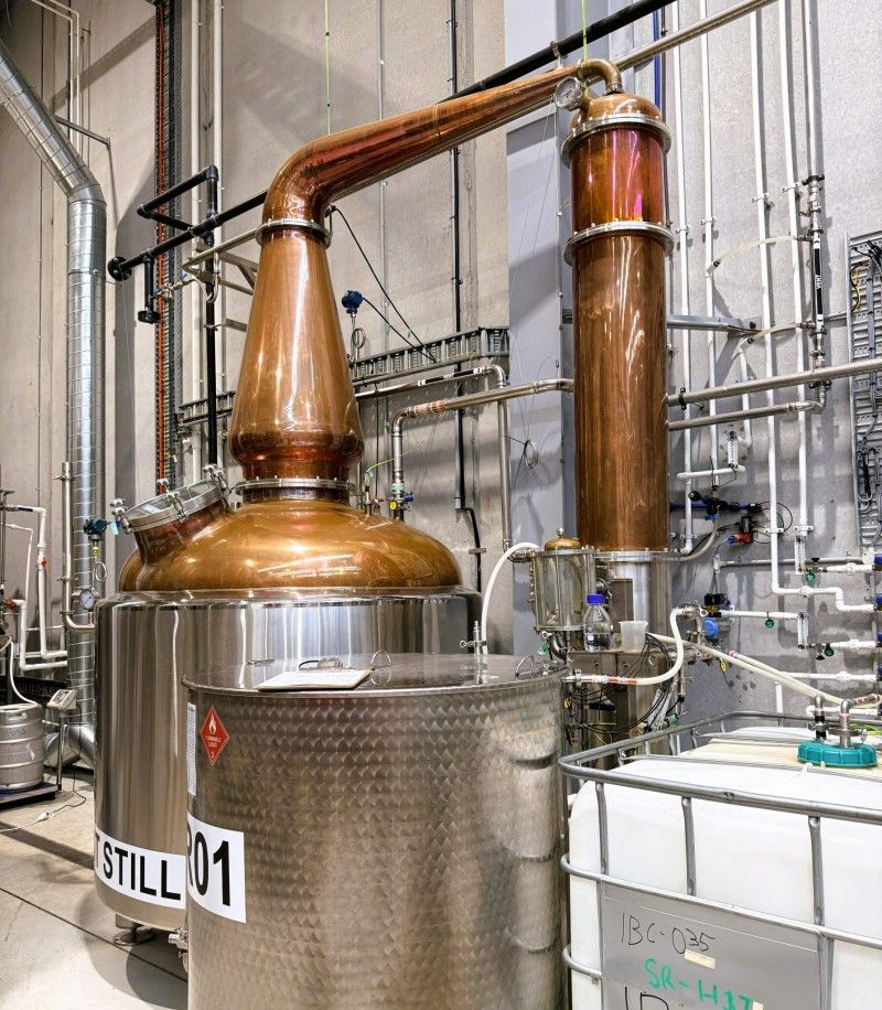 FULLY EQUIPPED WHISKEY PRODUCTION FACILITY & TURNKEY: Includes all state of the art distilling equipment, purpose built facility, and approved licenses. Premium-grade stills, fermentation tanks, mash tun, bottling line & infrastructure. It features a six-meter high continuous column still, designed and built in-house, and a bespoke copper pot still. Ideal for whiskey, gin, or other spirits production or contract distilling. Custom built fixtures & fittings, designed for efficiency and aesthetic impact